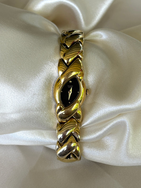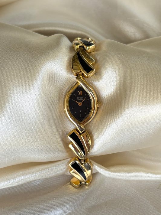 RARE Vintage Gold-Tone Braided Links with Black Dial