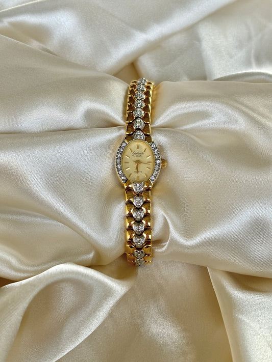 Vintage Gold Watch With Rhinestone Hearts