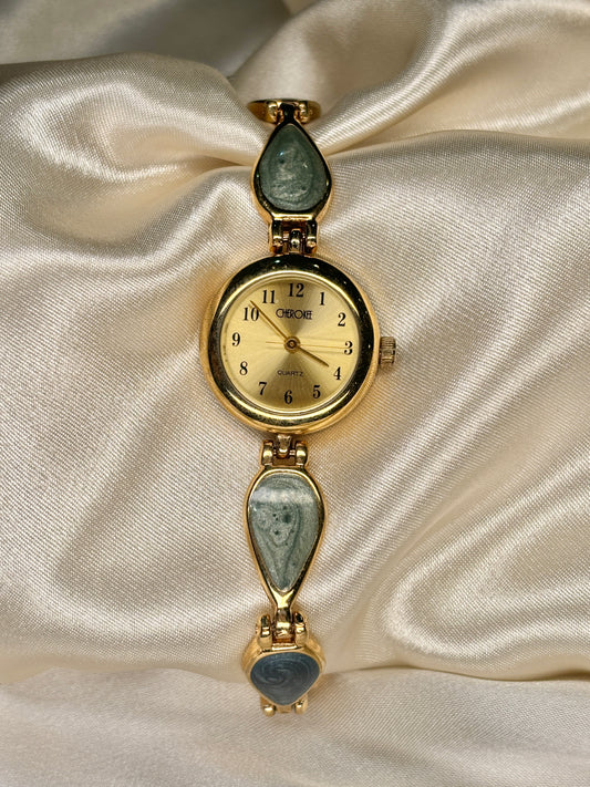 Sold outVintage Gold And Green Stone Watch