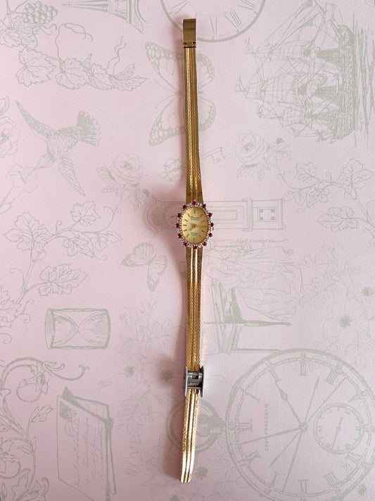Vintage Gold Toned Watch With Blue Gems