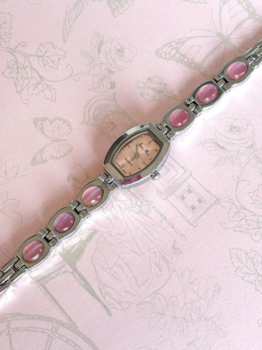 Vintage Silver and Pink Gemstone Watch