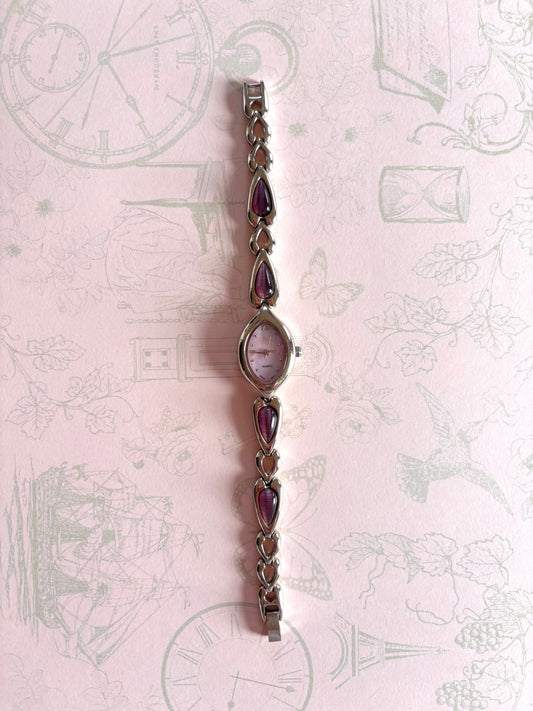 Vintage Silver Watch with Purple Teardrop Gemstones